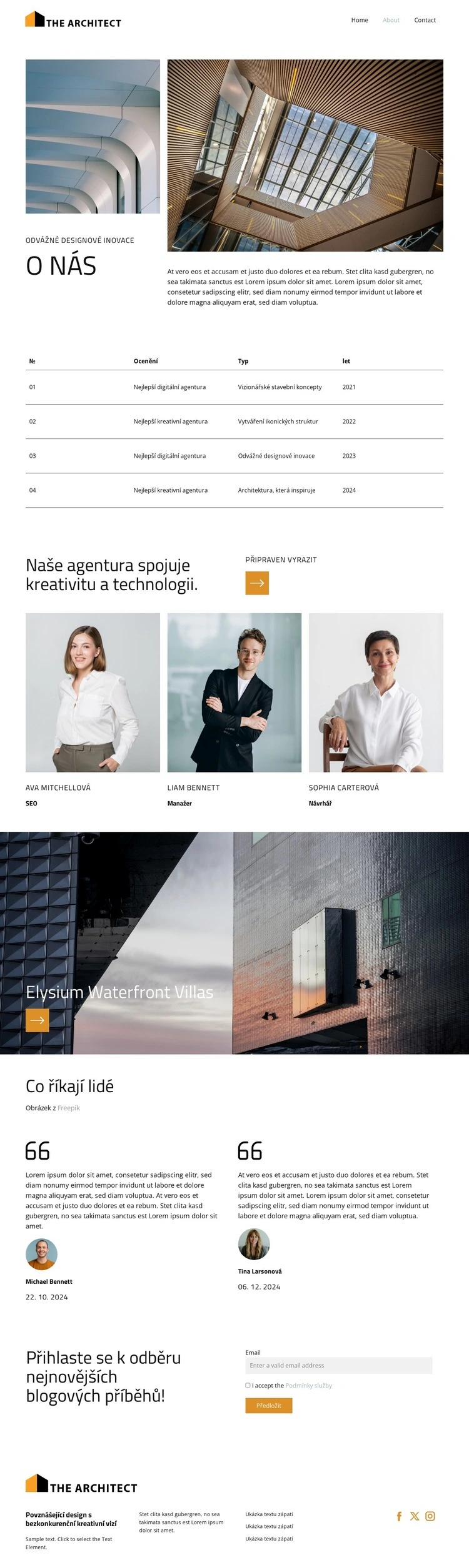 Vytvořte si profesionální bezplatnou šablonu webových stránek. Citlivý, plně přizpůsobitelný pomocí snadného editoru Drag-n-Drop Nicepage. Upravte barvy, písma, záhlaví a zápatí, rozvržení a další prvky návrhu, stejně jako obsah a obrázky.