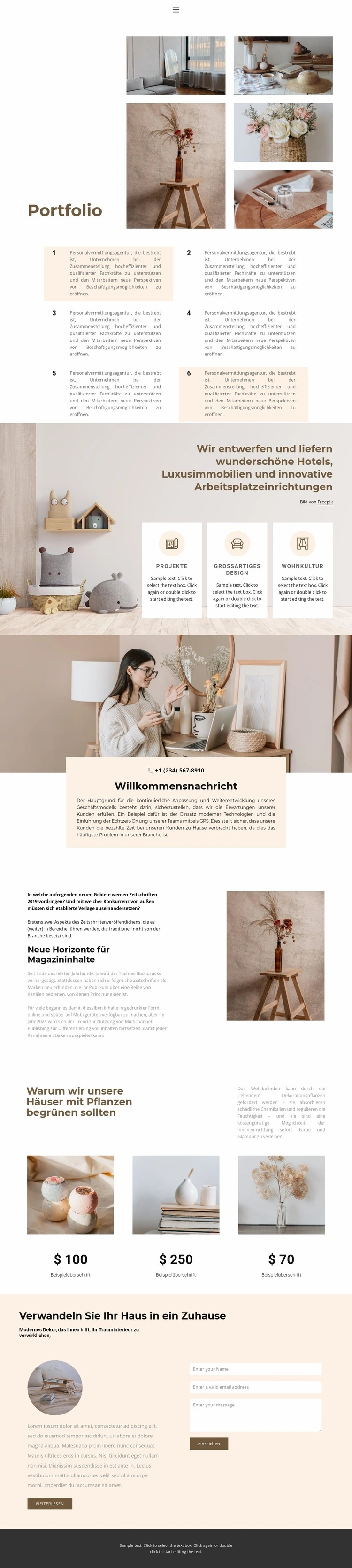 Wenn Sie HTML Builder verwenden, können Sie Farben, Schriftarten, Kopf- und Fußzeilen, Layout, Spalten und andere Designelemente sowie Inhalte und Bilder anpassen.