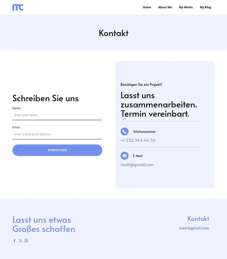 Wenn Sie HTML Builder verwenden, können Sie Farben, Schriftarten, Kopf- und Fußzeilen, Layout, Spalten und andere Designelemente sowie Inhalte und Bilder anpassen.