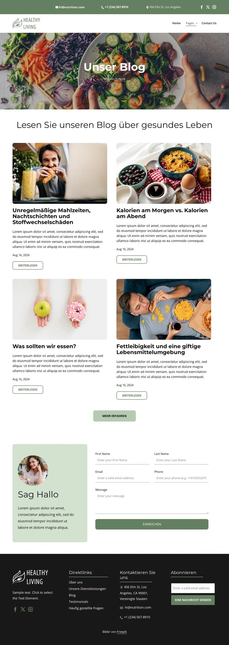 Wenn Sie Landing Page Builder verwenden, können Sie Farben, Schriftarten, Kopf- und Fußzeilen, Layout, Spalten und andere Designelemente sowie Inhalte und Bilder anpassen.
