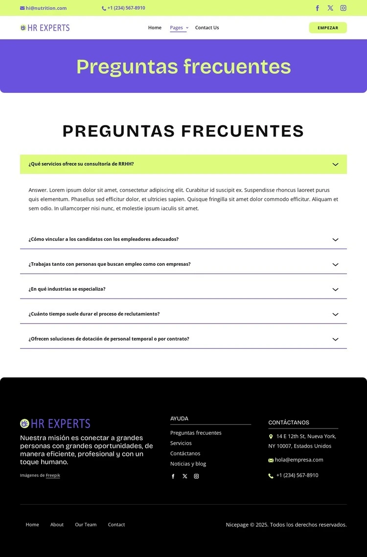 Descubra diseños web profesionales. Responsive y totalmente personalizables con el sencillo editor Nicepage de arrastrar y soltar. Ajuste colores, fuentes, encabezado y pie de página, diseño y otros elementos, así como el contenido y las imágenes.