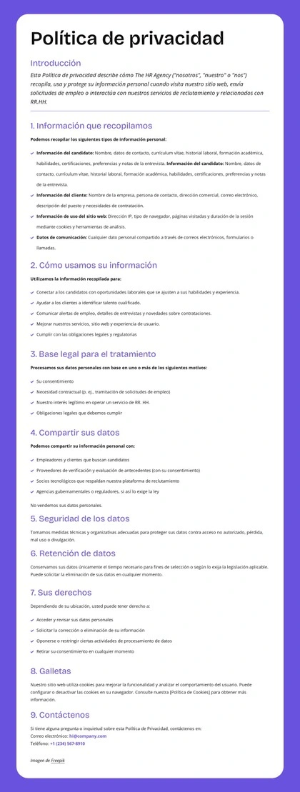 Protección de la privacidad a nivel empresarial Plantilla de sitio web