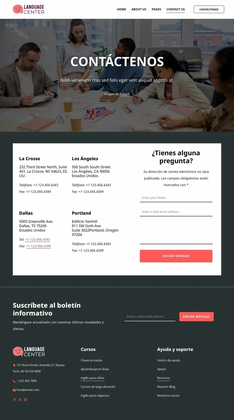 Página de contacto del centro de idiomas Plantilla