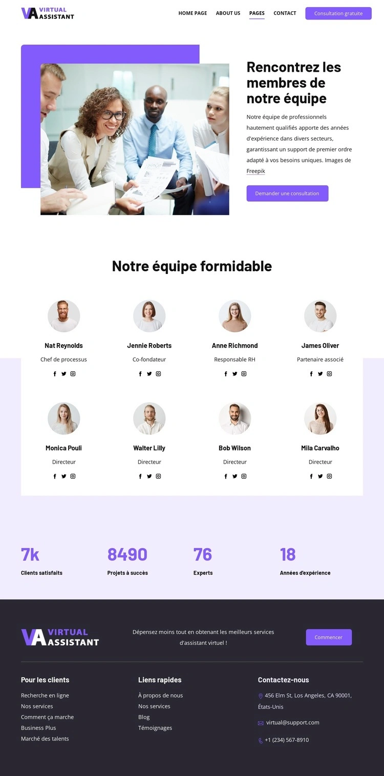 Rencontrez les membres de notre équipe Modèle HTML