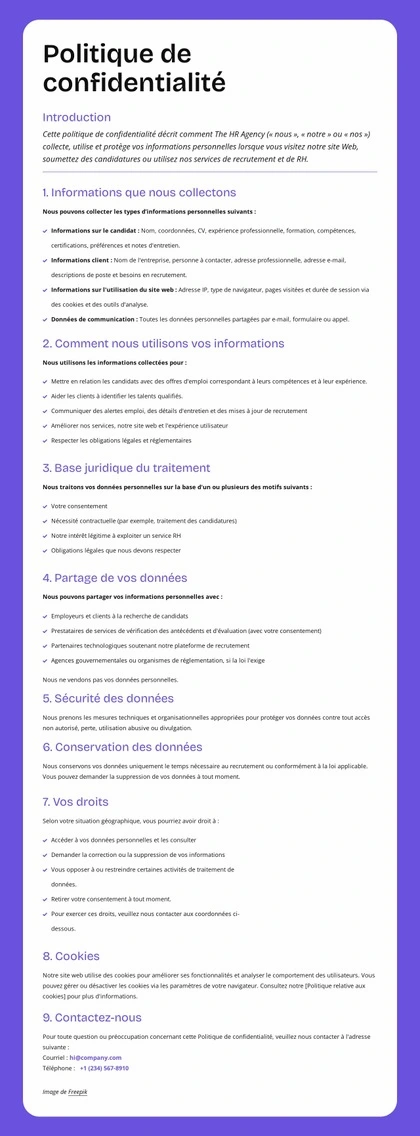 Protection de la confidentialité au niveau de l'entreprise Modèle HTML