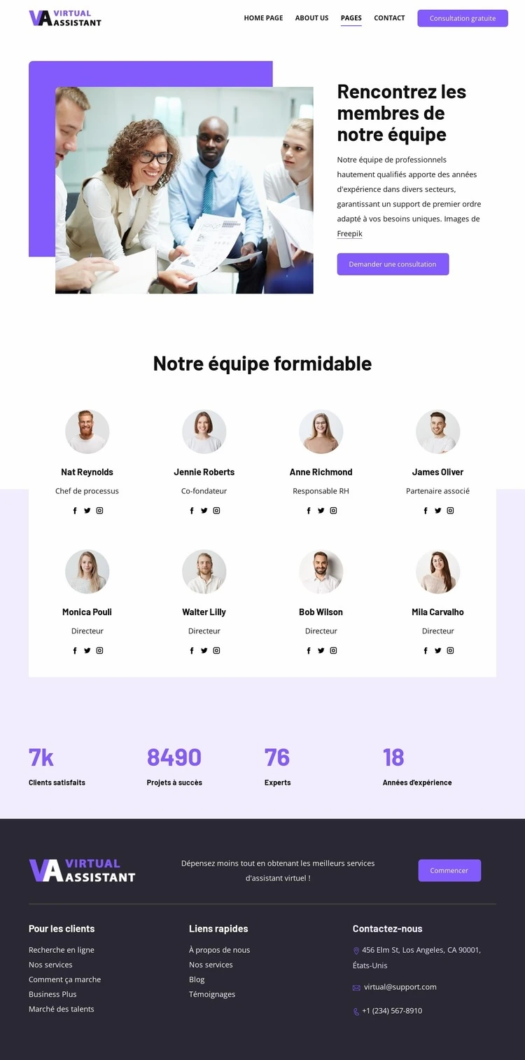 Lorsque vous utilisez Générateur de modèles d'une page, vous pourrez ajuster les couleurs, les polices, l'en-tête et le texte, la mise en page, les colonnes et autres éléments de conception, ainsi que le contenu et les images.