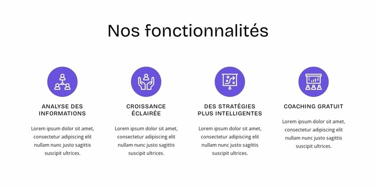 Lorsque vous utilisez Générateur de modèles d'une page, vous pourrez ajuster les couleurs, les polices, l'en-tête et le texte, la mise en page, les colonnes et autres éléments de conception, ainsi que le contenu et les images.