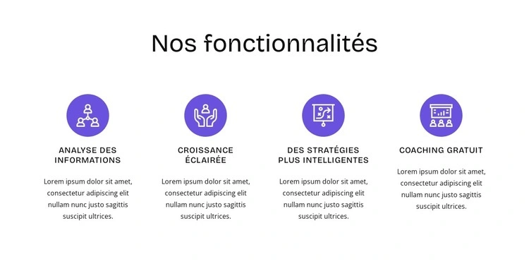 Lorsque vous utilisez Générateur de maquette de site Web, vous pourrez ajuster les couleurs, les polices, l'en-tête et le texte, la mise en page, les colonnes et autres éléments de conception, ainsi que le contenu et les images.