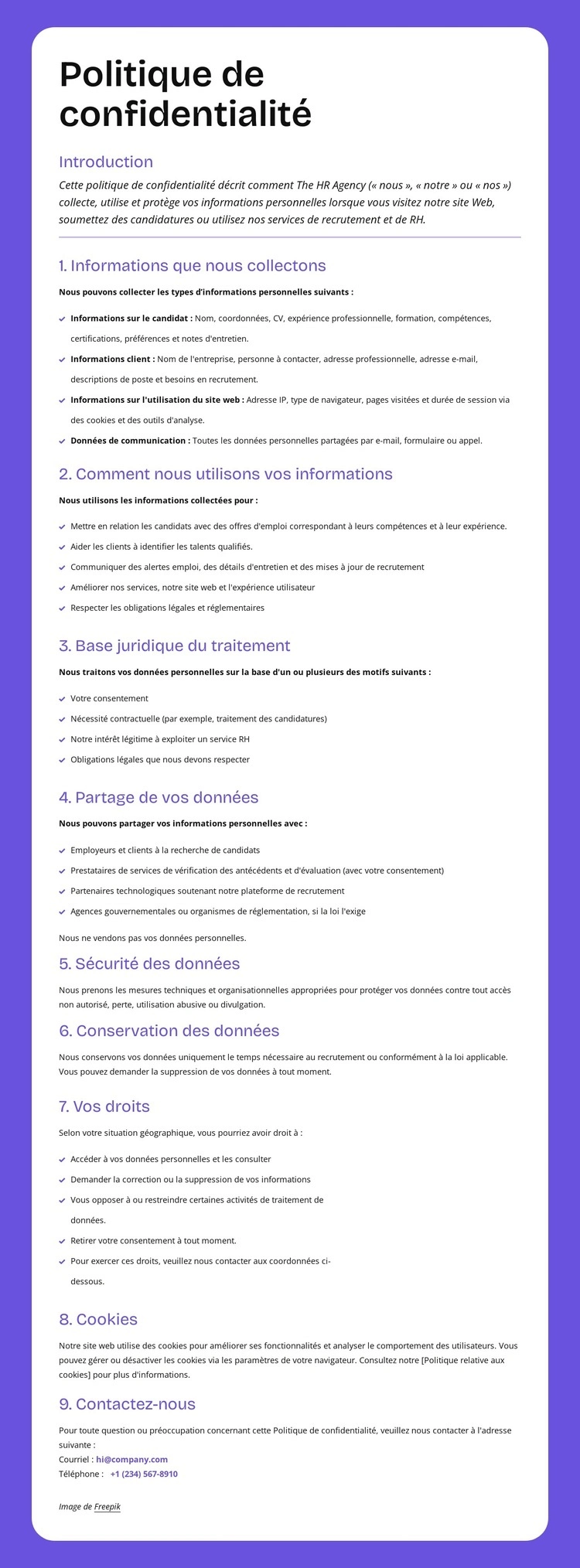 Protection de la confidentialité au niveau de l'entreprise Modèle CSS