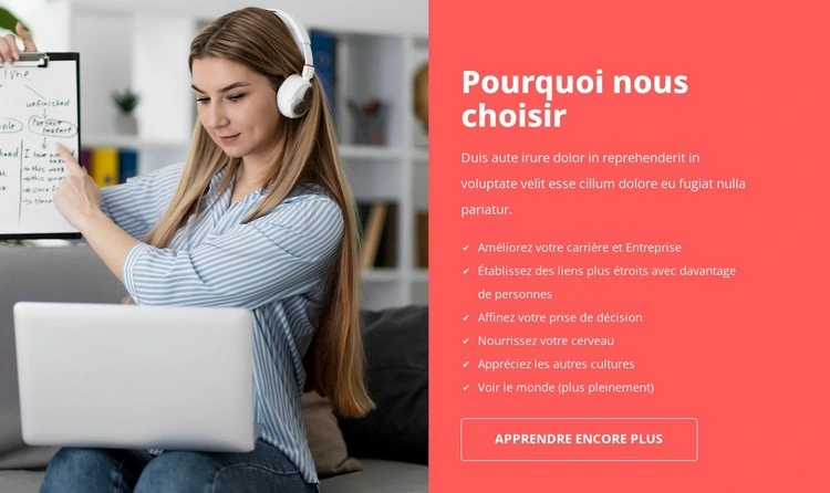 Lorsque vous utilisez Créateur de conception de site Web, vous pourrez ajuster les couleurs, les polices, l'en-tête et le texte, la mise en page, les colonnes et autres éléments de conception, ainsi que le contenu et les images.