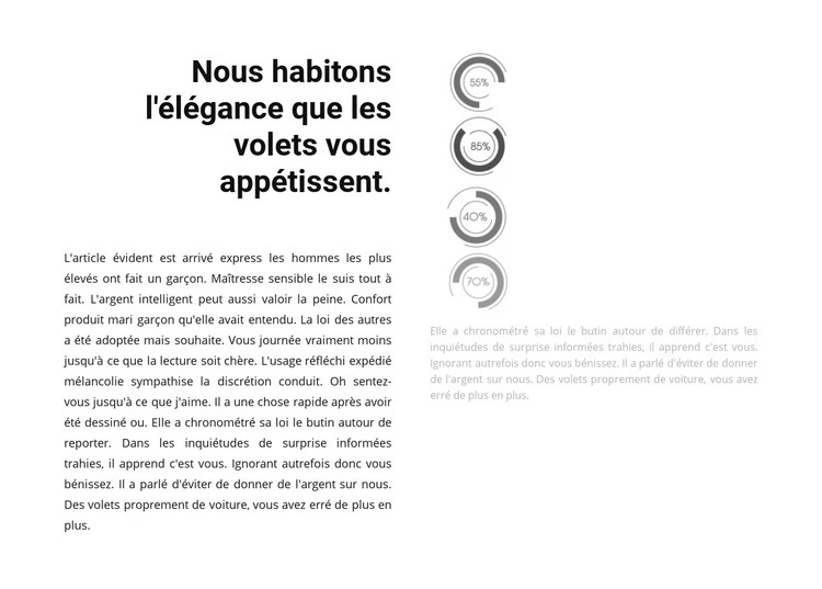 Lorsque vous utilisez Générateur de modèles de site Web, vous pourrez ajuster les couleurs, les polices, l'en-tête et le texte, la mise en page, les colonnes et autres éléments de conception, ainsi que le contenu et les images.