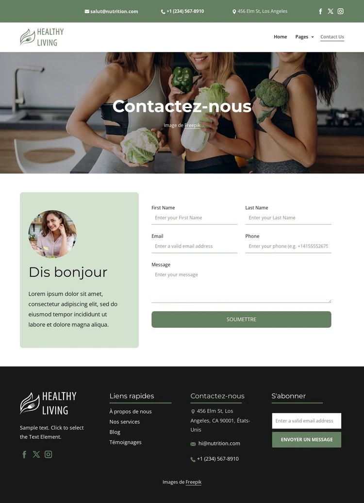 Lorsque vous utilisez Générateur de modèles de site Web, vous pourrez ajuster les couleurs, les polices, l'en-tête et le texte, la mise en page, les colonnes et autres éléments de conception, ainsi que le contenu et les images.