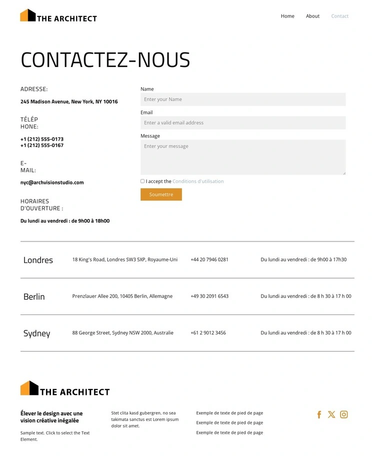 Lorsque vous utilisez Générateur de modèles de site Web, vous pourrez ajuster les couleurs, les polices, l'en-tête et le texte, la mise en page, les colonnes et autres éléments de conception, ainsi que le contenu et les images.