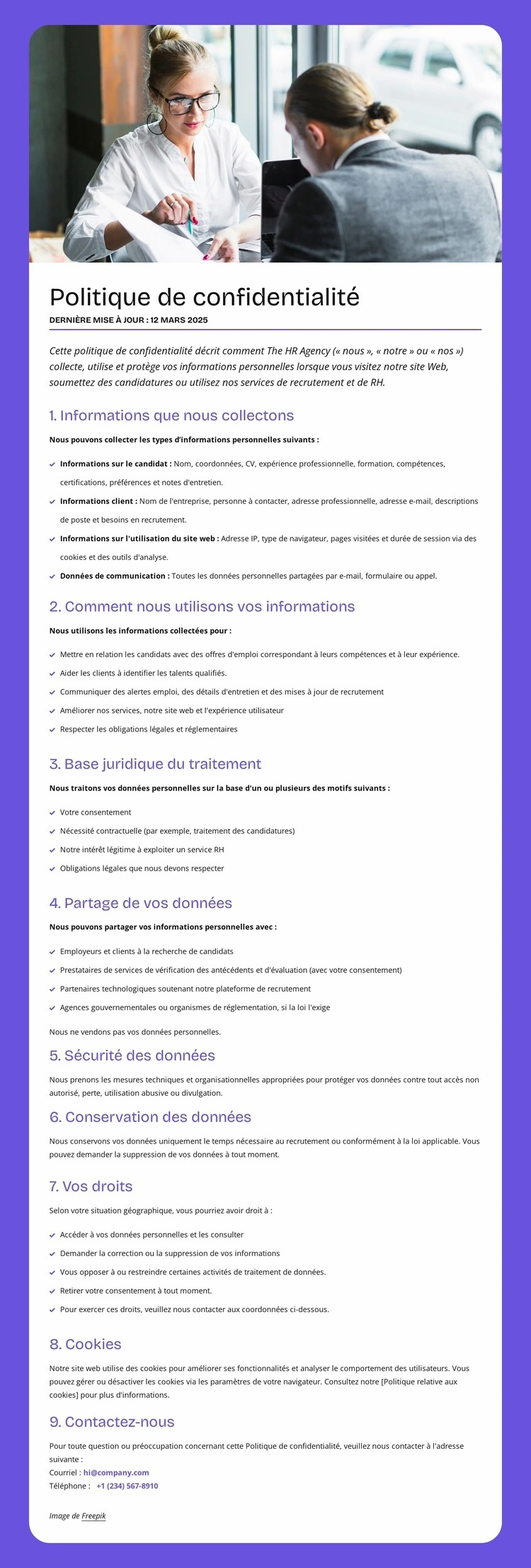 Comment nous utilisons vos informations Modèle de site Web