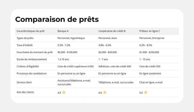Caractéristiques du produit côte à côte Modèle de site Web