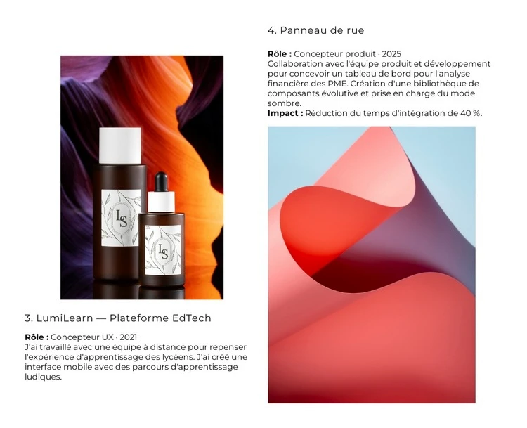 Lorsque vous utilisez Générateur de modèles, vous pourrez ajuster les couleurs, les polices, l'en-tête et le texte, la mise en page, les colonnes et autres éléments de conception, ainsi que le contenu et les images.