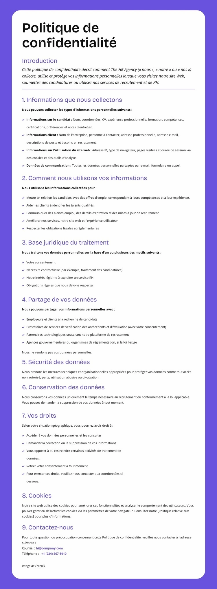 Protection de la confidentialité au niveau de l'entreprise Thème WordPress