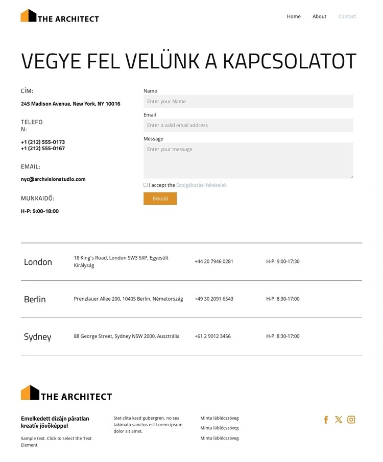 Hozzon létre professzionális ingyenes weboldal sablont. Érzékeny, teljesen testreszabható az egyszerű Drag-n-Drop Nicepage szerkesztővel. Állítsa be a színeket, a betűtípusokat, a fejlécet és a láblécet, az elrendezést és egyéb tervezési elemeket, valamint a tartalmat és a képeket.