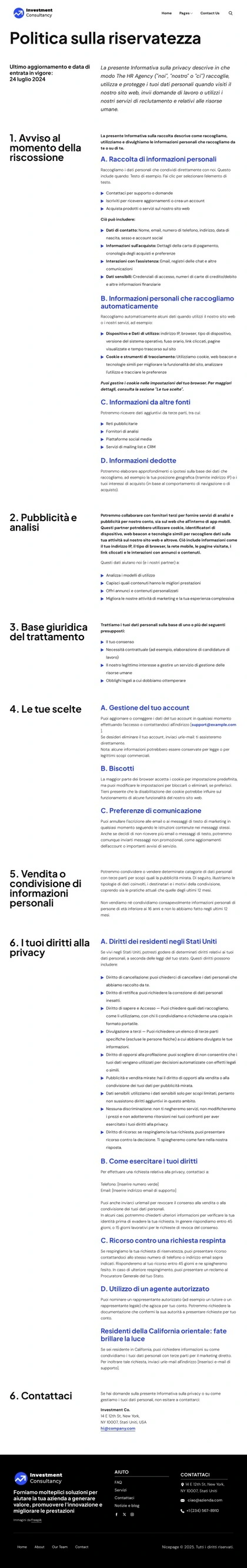 La tua fiducia, la nostra responsabilità Modello CSS