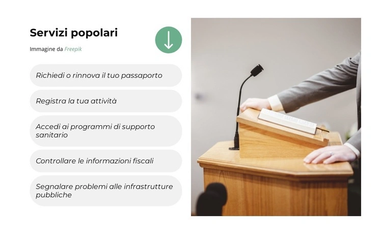 Scopri design di siti web professionali. Responsive, completamente personalizzabili con il semplice editor Drag-n-Drop Nicepage. Regola colori, font, intestazione e piè di pagina, layout e altri elementi di design, oltre a contenuti e immagini.