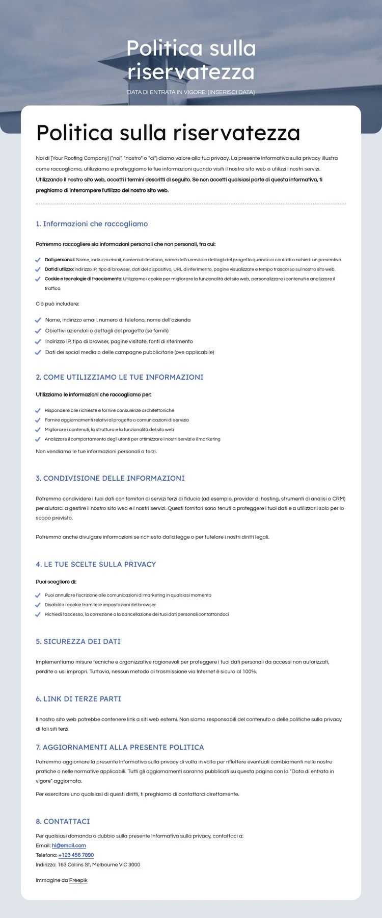 Quando utilizzi Generatore di modelli sarai in grado di regolare colori, caratteri, intestazione e fooer, layout, colonne e altri elementi di design, nonché contenuti e immagini.