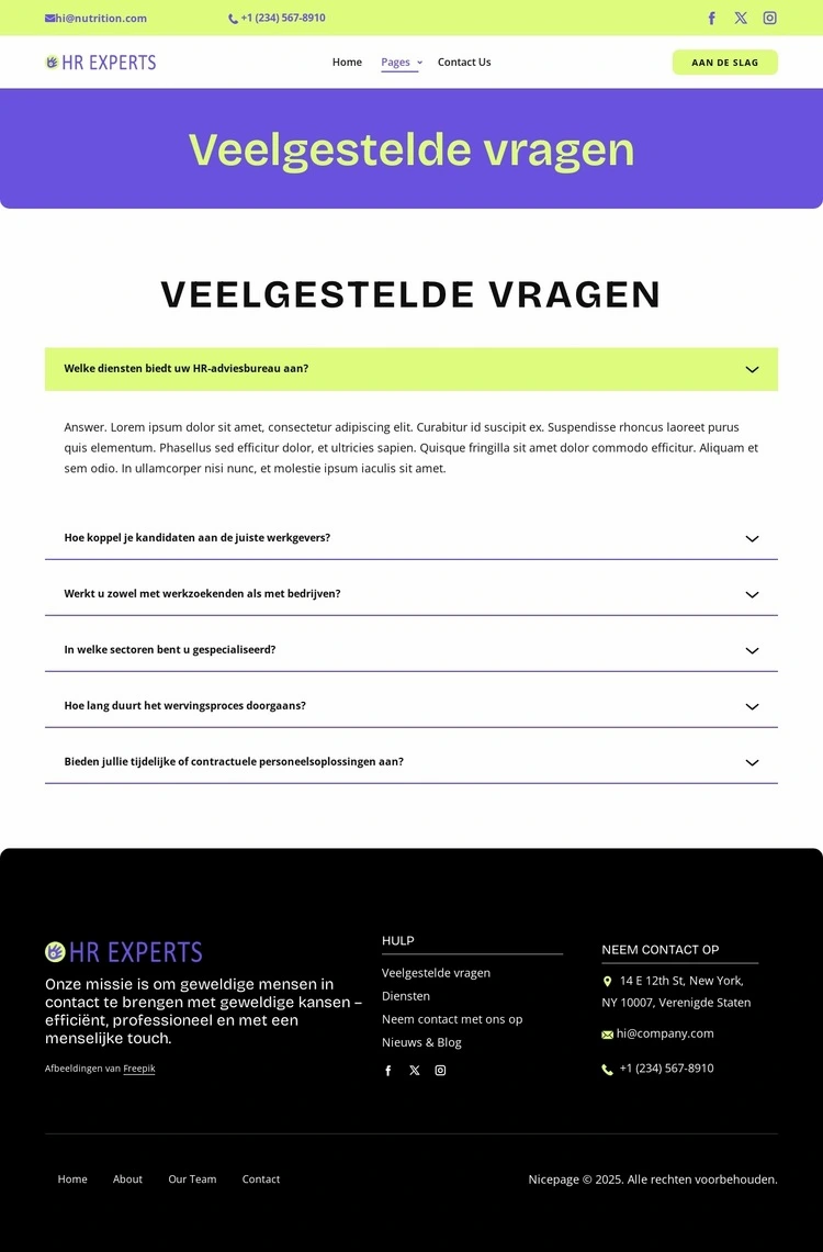 Ontdek professionele websiteontwerpen. Responsief en volledig aanpasbaar met de handige Drag-n-Drop Nicepage-editor. Pas kleuren, lettertypen, kop- en voettekst, lay-out en andere ontwerpelementen aan, evenals de inhoud en afbeeldingen.