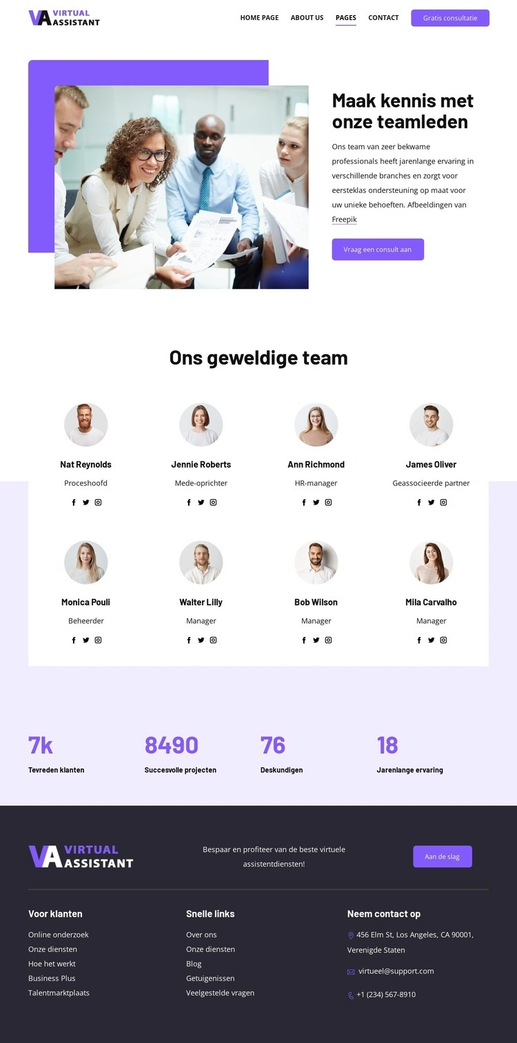 Wanneer u Website-sjabloonbouwer gebruikt, kunt u kleuren, lettertypen, koptekst en tekst, lay-out, kolommen en andere ontwerpelementen, evenals inhoud en afbeeldingen aanpassen.