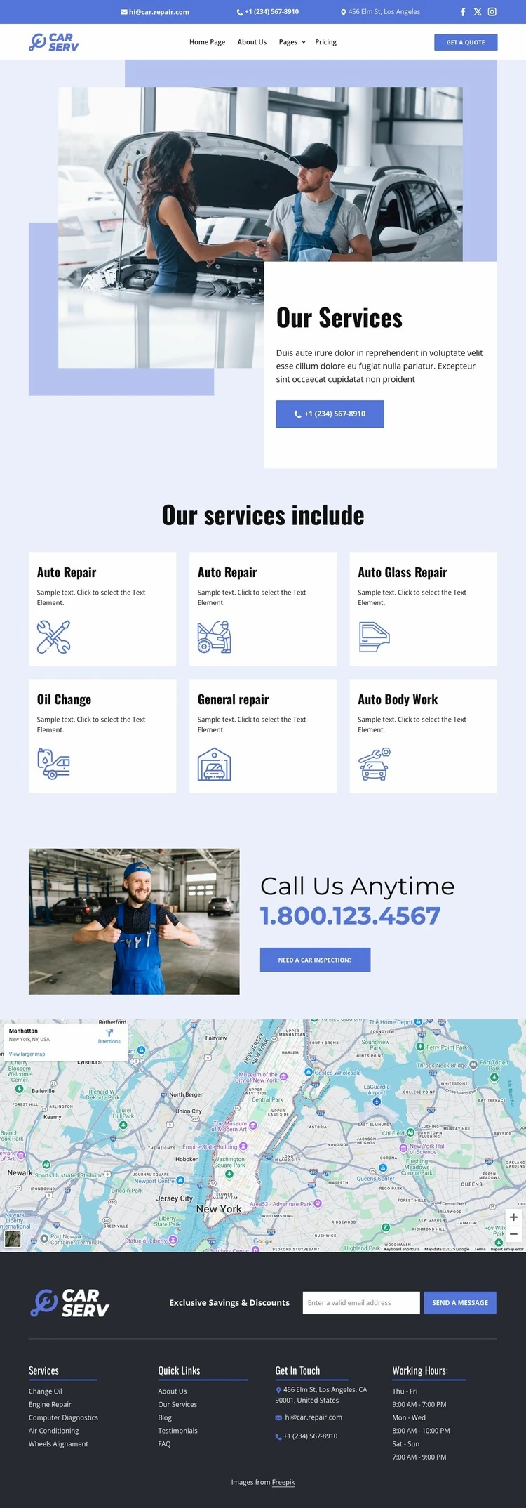 When using Web Page Design Builder you will be able to adjust colors, fonts, header and footer, layout, columns and other design elements, as well as content and images.