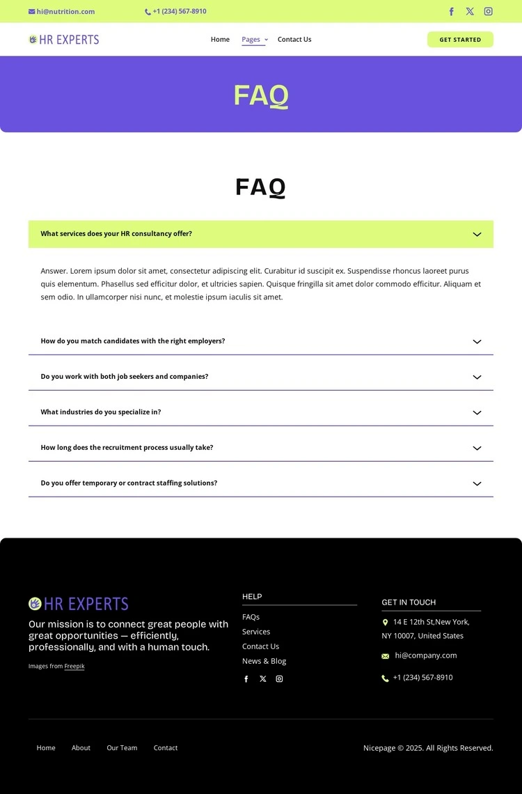 Create professional web page design. Responsive, fully customizable with easy Drag-n-Drop Nicepage editor. Adjust colors, fonts, header and footer, layout and other design elements, as well as content and images.
