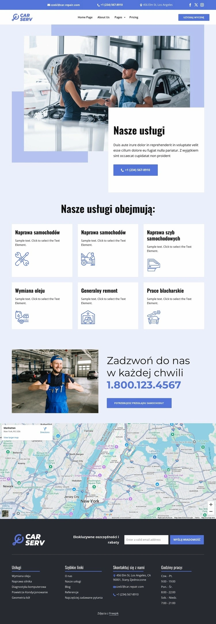 Lista usług naprawy samochodów Projekt strony internetowej