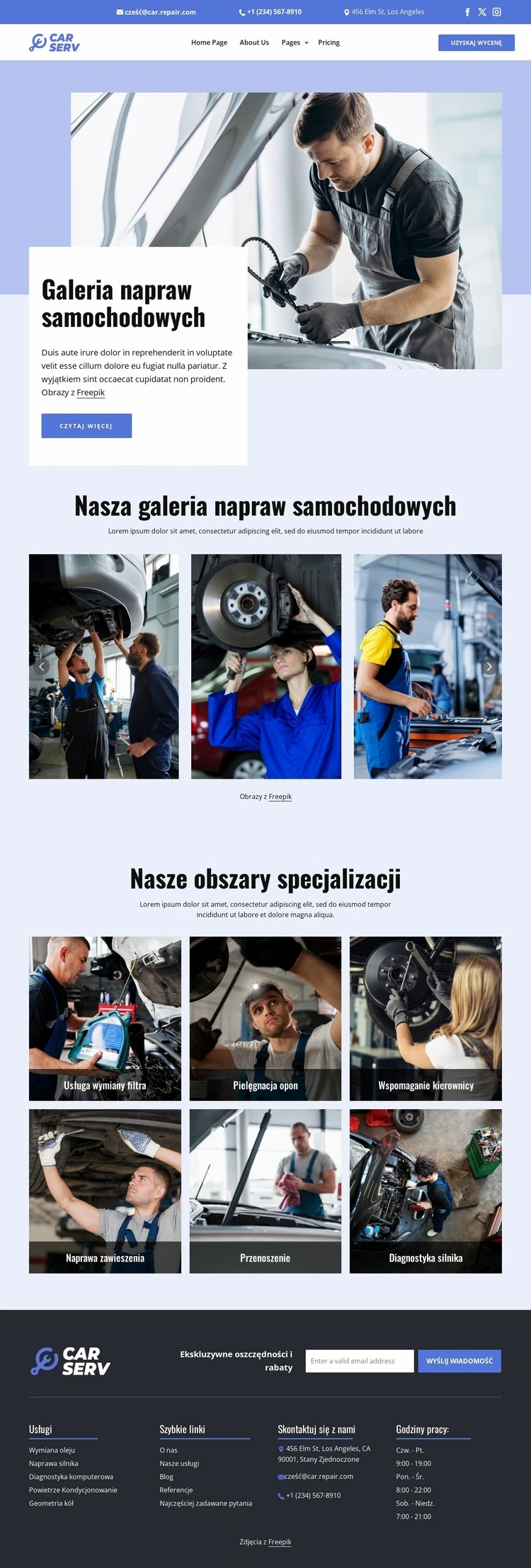 Galeria napraw samochodowych Projekt strony internetowej