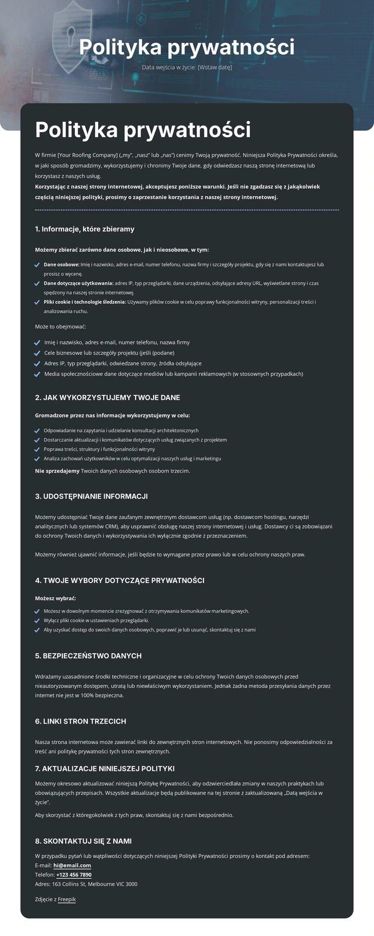 Poufność, na którą możesz liczyć Projekt strony internetowej