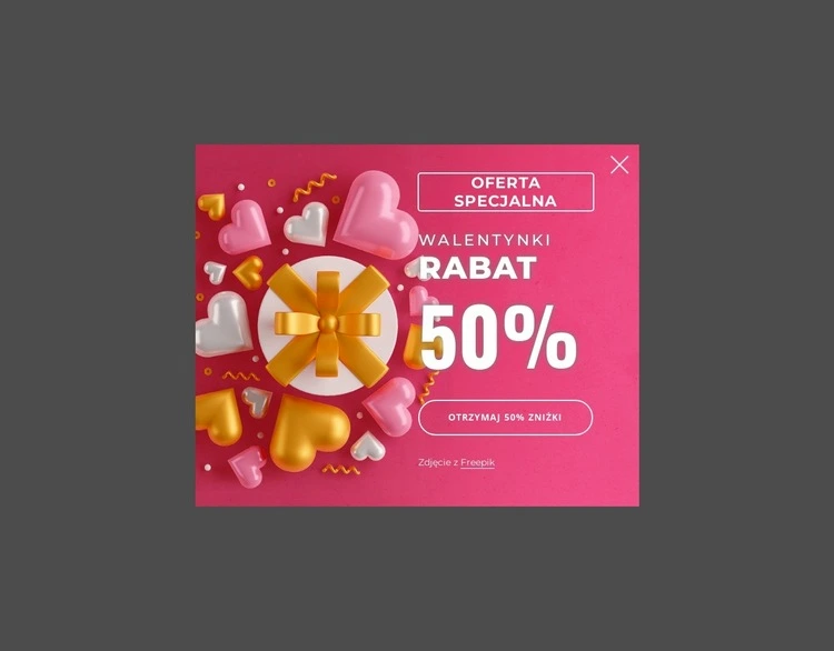 Okienko z kodem kuponu Projekt strony internetowej