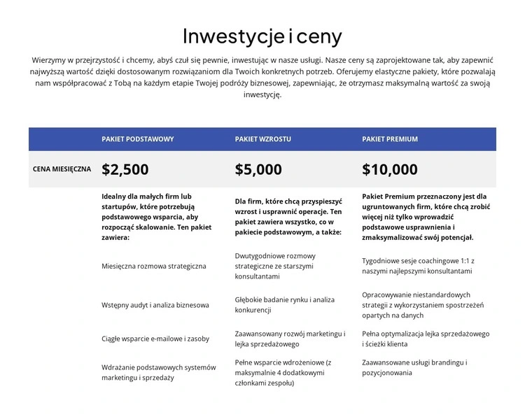 Korzystając z Kreator szablonów witryn internetowych, będziesz mógł dostosowywać kolory, czcionki, nagłówek i fooer, układ, kolumny i inne elementy projektu, a także zawartość i obrazy.