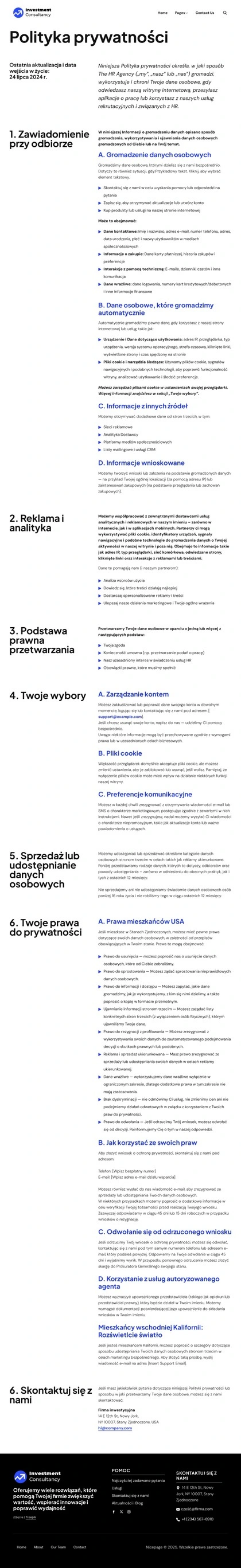 Korzystając z Kreator szablonów witryn internetowych, będziesz mógł dostosowywać kolory, czcionki, nagłówek i fooer, układ, kolumny i inne elementy projektu, a także zawartość i obrazy.