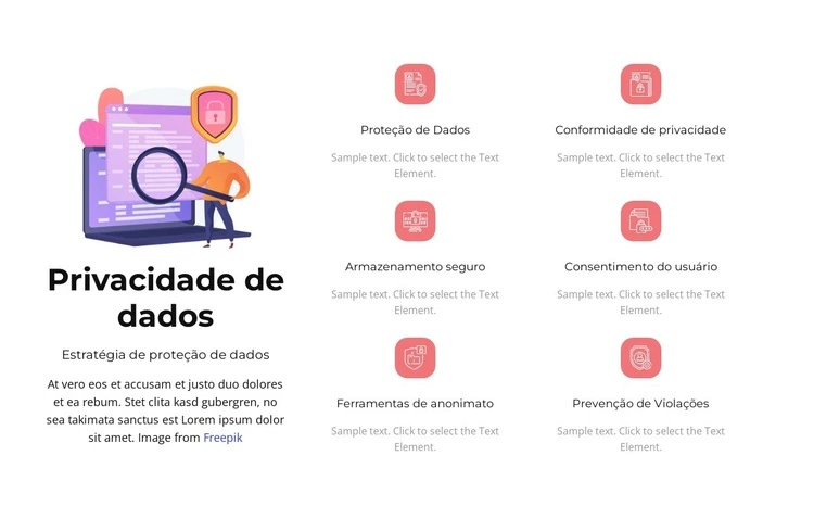 Ao usar o Construtor de Modelos de Site, você poderá ajustar cores, fontes, cabeçalho e base, layout, colunas e outros elementos de design, bem como conteúdo e imagens.