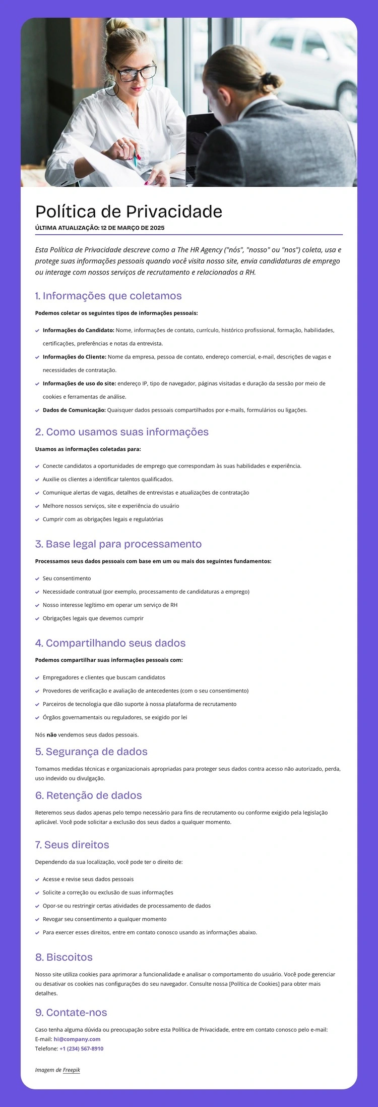 Ao usar o Construtor de Modelos de Site, você poderá ajustar cores, fontes, cabeçalho e base, layout, colunas e outros elementos de design, bem como conteúdo e imagens.