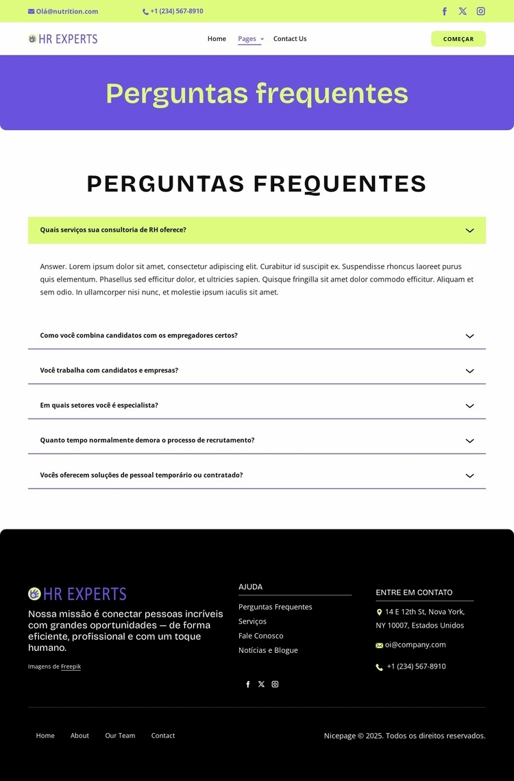Perguntas frequentes sobre recrutamento Tema WordPress
