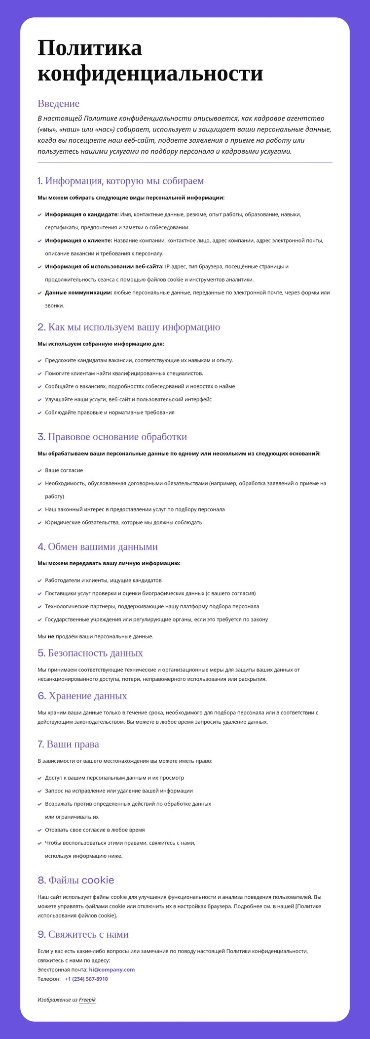 Защита конфиденциальности на уровне предприятия HTML шаблон