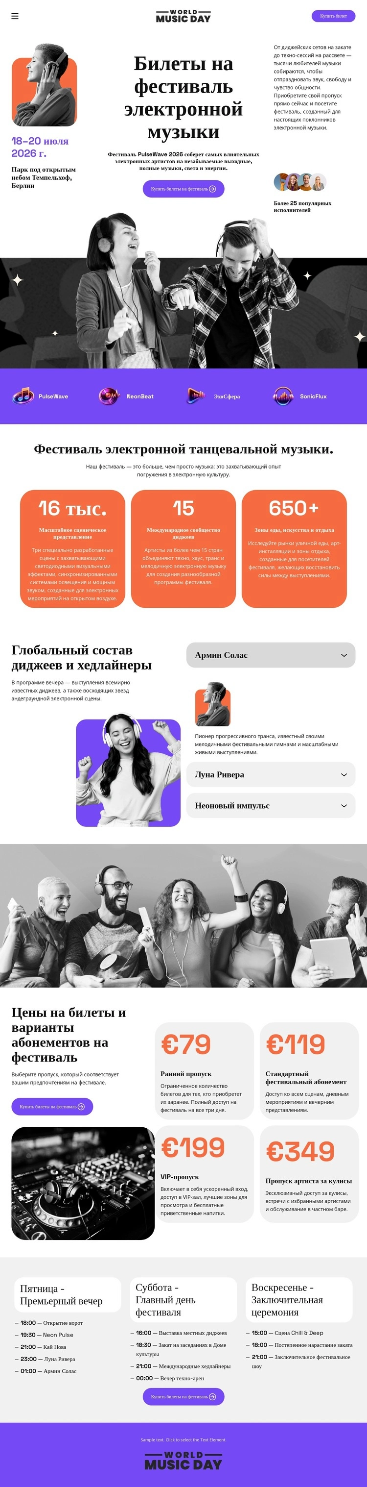 электронный билет на музыкальный фестиваль Шаблон Joomla