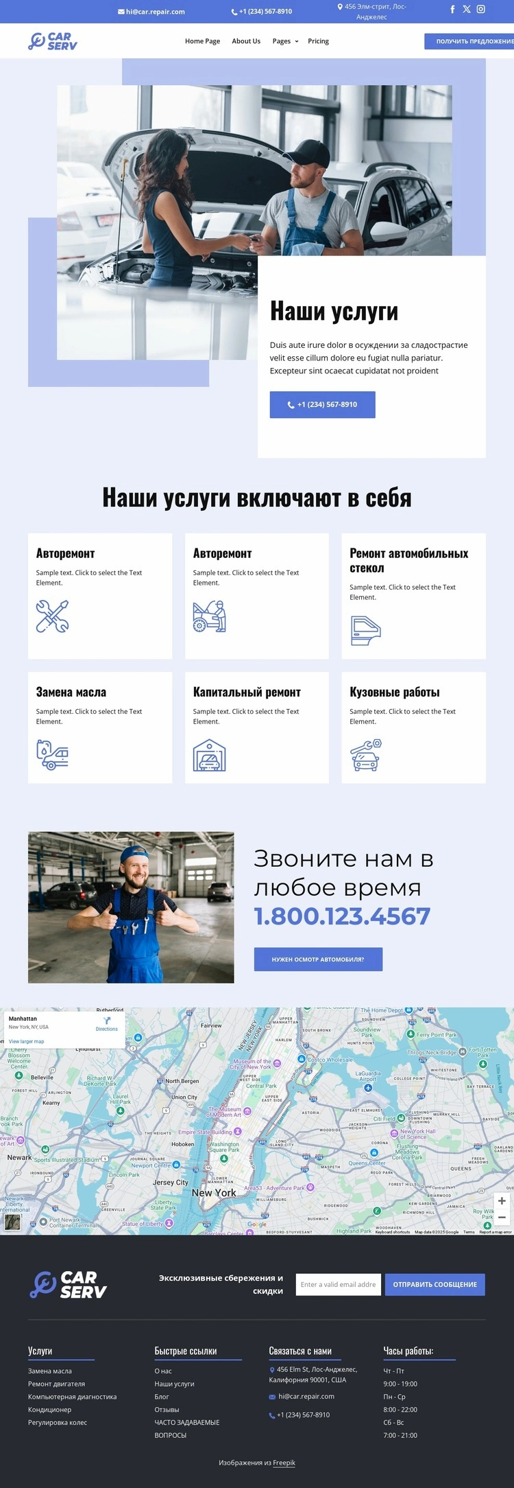 Список услуг по ремонту автомобилей Одностраничный шаблон
