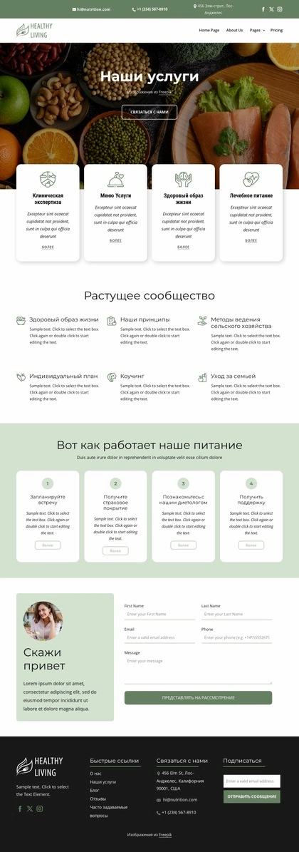 Продовольственная и диетическая служба Шаблон веб-сайта