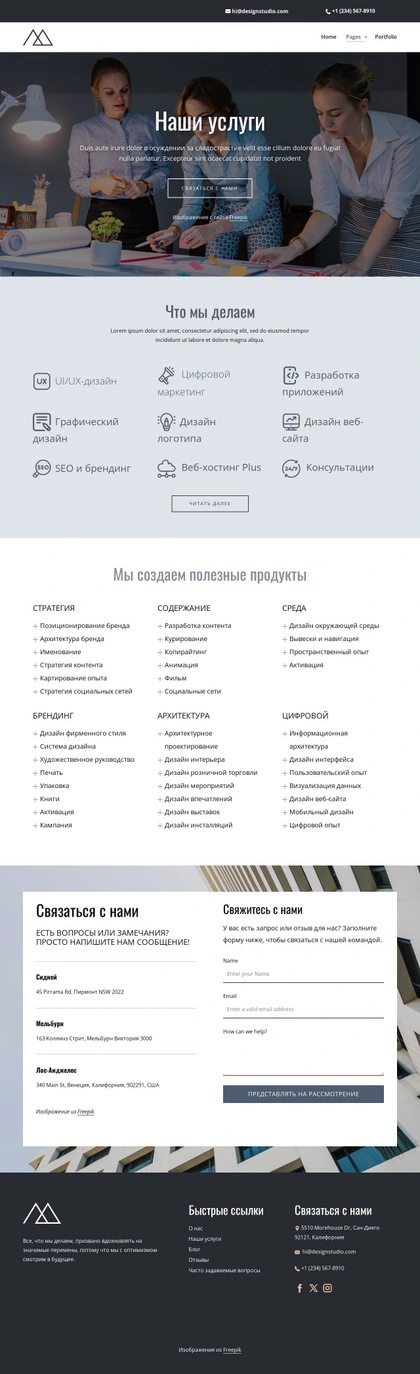 Услуги студии креативного дизайна Шаблон веб-сайта