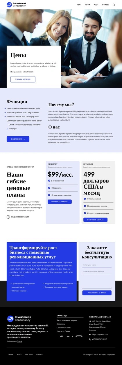Ценообразование инвестиционной компании Шаблон веб-сайта