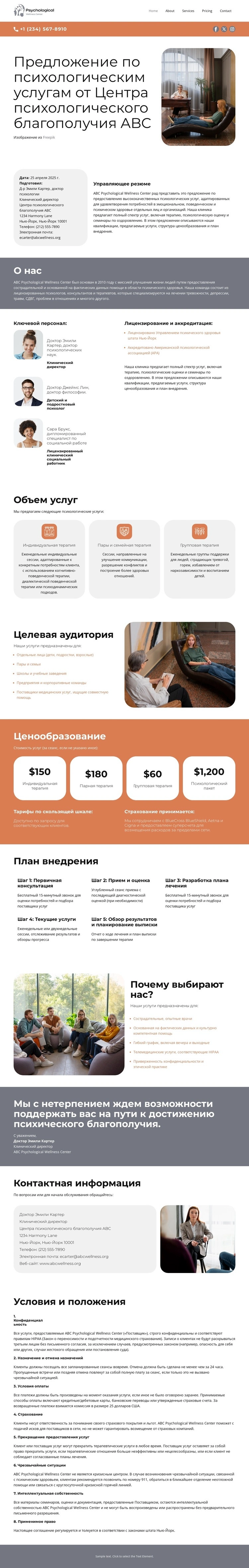 Центр психологического оздоровления Шаблон веб-сайта