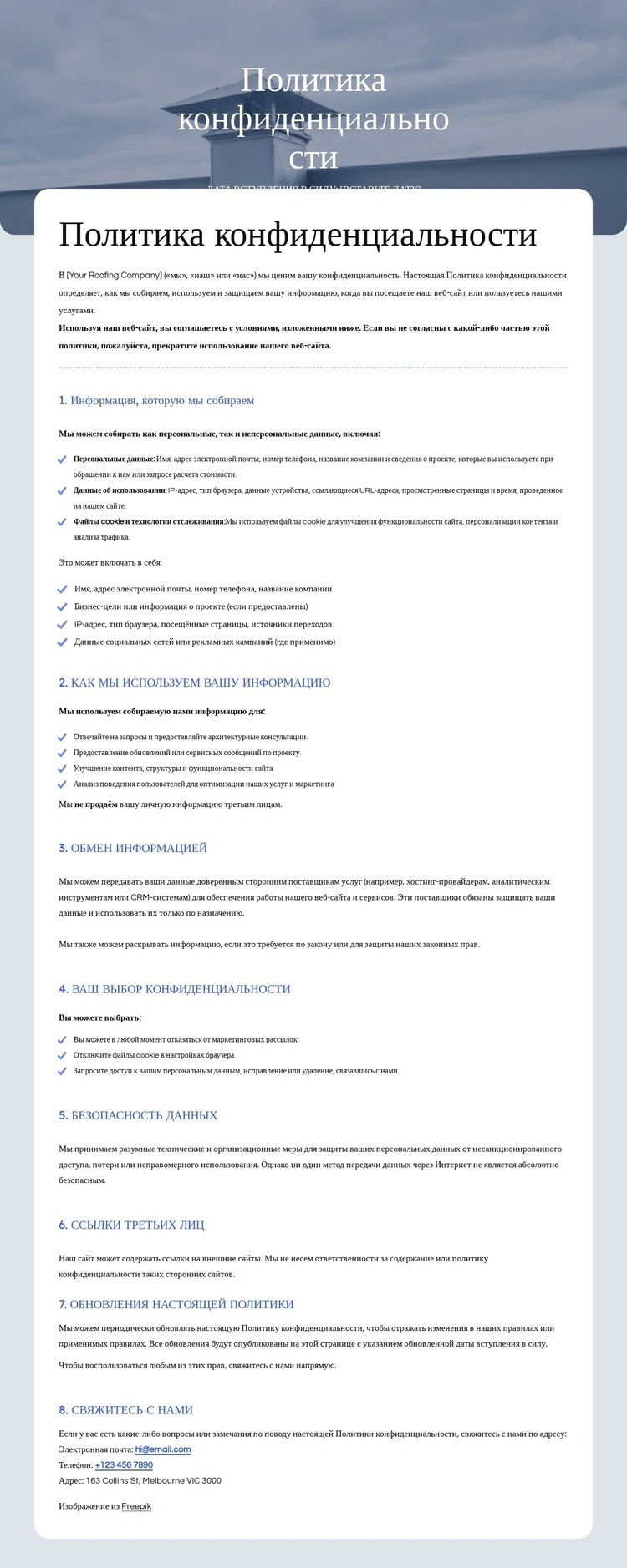 Мы уважаем вашу конфиденциальность Шаблон веб-сайта