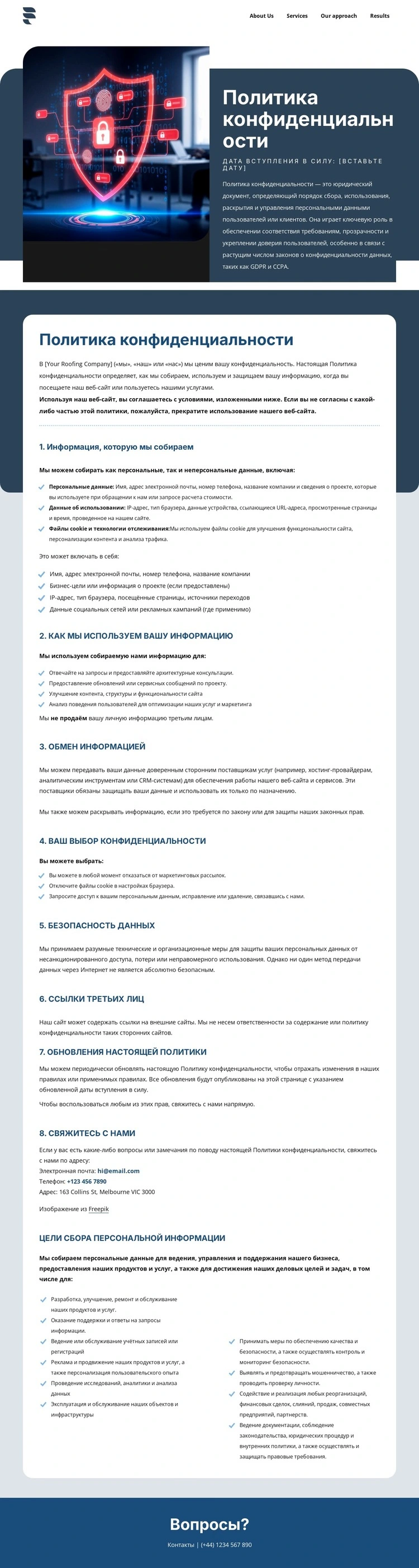 Конфиденциальность важна для наших клиентов Шаблон веб-сайта