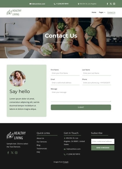 When using Website Template Builder you will be able to adjust colors, fonts, header and footer, layout, columns and other design elements, as well as content and images.