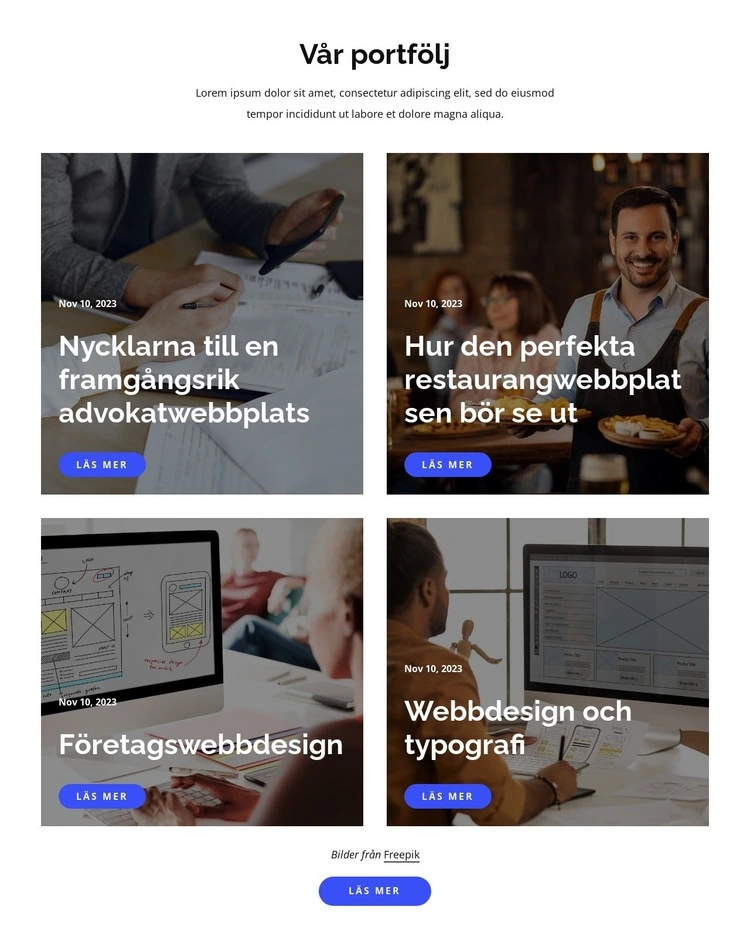 Skapa en professionell gratis webbplatsmall. Lyhörd, helt anpassningsbar med enkel Drag-n-Drop Nicepage-redigerare. Justera färger, teckensnitt, sidhuvud och sidfot, layout och andra designelement, samt innehåll och bilder.