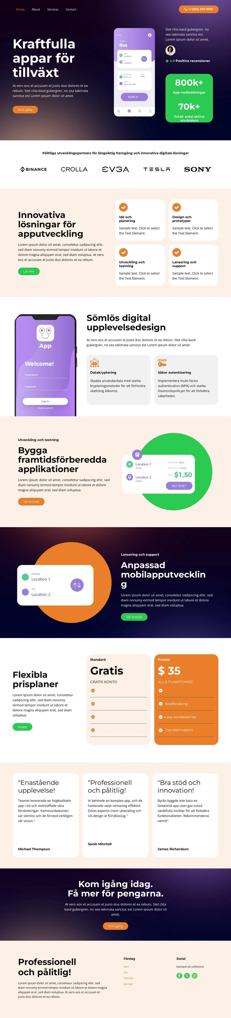 Professionella mallar. Lyhörd, helt anpassningsbar med enkel Drag-n-Drop Nicepage-redigerare. Justera färger, teckensnitt, sidhuvud och sidfot, layout och andra designelement, samt innehåll och bilder.